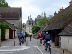 Llegamos al castillo de Chambord y la verdad es que es impresionante, es justo el inicio del horario de visitas, así que aparcamos las bicis y para adentro. Si la imagen exterior del castillo impresiona, no se queda atrás su interior (440 habitaciones, 365 chimeneas, y 84 escaleras), evidentemente no está todo abierto a la visitas, pero vamos que hay más que suficiente para echar varias horas allí dentro con la boca abierta. En síntesis, una visita obligada y sumamente interesante, solo tiene un problema, que después de ver el de Chambord todos los demás castillos nos pueden parecer insignificantes, pero no es así ya que cado uno tiene su encanto. En la tienda de souvenirs del castillo, donde nos atiende un cordobés, nos compramos unos ponchos chubasqueros pues el tiempo amenaza lluvia y no queremos volver a tener que echar mano de la furgo para terminar la etapa. ![]() ![]() Las premoniciones se cumplen, antes de salir del bosque del castillo tenemos que estrenar los ponchos, a la lluvia se le suma aire de cara que hace que se nos hinchen los ponchos y se conviertan en paracaídas, al final optamos por atárnoslos por la cintura lo que nos convertía en monjes en bicicleta. Desde luego no era lo más ortodoxo ciclísticamente hablando, pero los ponchos encima de los chubasqueros nos permitieron seguir pedaleando bajo la lluvia manteniendo la ropa seca.