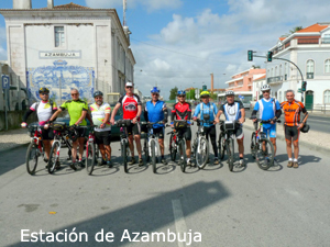 ![]() ![]() ![]() ![]() ![]() ![]() En esta etapa recorreremos la provincia del Ribatejo, o lo que es lo mismo la Ribera del Tejo (Tajo en Portugués). Como ya queda dicho nos vimos obligados a planificar la ruta en 7 etapas, por lo que esta primera nos quedaba demasiado larga para hacerla en bici y además la primera parte de salida de Lisboa no tiene un especial atractivo, como ocurre con las periferias de toda gran ciudad, así que los primeros km de la etapa desde Lisboa a Azambuja los hicimos en tren. Pedro, José Luis y Jorge se fueron con la furgoneta y las bicis hasta Azambuja y cuando llegaron los "ferroviarios" ya estaban las bicis preparadas e incluso con los bidones llenos de agua fresquita, todo dispuesto para empezar la verdaderara aventura.