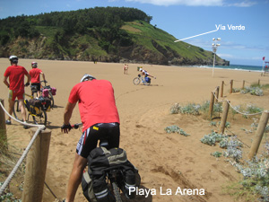 Elegimos las inmediaciones del museo Guggengehin como el comienzo de la ruta, puesta cero de contadores, preparación de gps, fotos de inicio y comienza la aventura, a disfrutar del Camino. Para los que como nosotros inicien la ruta en el Bilbao y por tanto no tengan necesidad de subir al albergue de Bilbao, se recomienda seguir la orilla izquierda de la ría en dirección Barakaldo y no seguir el track, éste transcurre por el camino real que, buscando la localización del albergue, sube hasta la carretera de Kastrexana para cruzar la Autovía del Cantábrico y después volver a bajar hasta la orilla de la ría. Por las inmediaciones de la ría y en el corazón industrial del País Vasco, atravesamos Barakaldo y después Sestao, para adentrarnos en Portugalete por la calle Sotera de la Mier con la visión del Puente Colgante en el Horizonte. En Portugalete paramos para empezar la experiencia gastronómica del viaje dando cuenta de la exposición de montaditos de un bar de la C/ Gral. Castaños. Salimos de Portugalete por la Avd. de Carlos VII y poco después de cruzar la A-8 nos encontramos con la Bidagorri, un carril bici de unos 11 km que nos llevan a la playa de La Arena, cruzamos la playa y un puente sobre la ría Barbadum que desemboca en una esquina de la playa. Nada más cruzar el puente, las flechas nos desvían hacia la derecha para subir unas empinadas escaleras que remontan hasta el trazado de un antiguo tren minero. No obstante, antes de subir las escaleras nos acercamos al barrio de Pobeña para poner el primer sello de nuestro camino en el albergue que se encuentra en el edificio de las antiguas escuelas de Pobeña. Después del “sellaje” en Pobeña retomamos el camino con “empujing” en el tramo de escaleras, que se hace más llevadero gracias a la especie de acequia lateral de desagüe que tienen y por donde se pueden meter las ruedas de la bici sin necesidad de saltar los escalones. El final de las escaleras nos lleva a encontrarnos con el antiguo trazado de un tren minero que, bordeando la cornisa marítima, acercaba mineral al embarcadero de Dicido y que actualmente lo han convertido en Vía Verde. El comienzo de la Vía Verde dispone de una fuente y desde allí se obtiene una bella panorámica de la playa. Por la Vía Verde abandonamos el País Vasco y entramos en Cantabria por la población de Ontón, que nos recibe en bajada después de cruzar la autovía. Atravesamos Ontón y salimos a la N-634, justo en una curva desde donde arranca la CA-523. Cruzamos la nacional y cogemos en subida la CA-523 en dirección Baltezana, tras cruzar la población la carretera sigue subiendo hasta alcanzar la cota máxima de la etapa en el cruce a Talledo y La Helguera. Seguimos de frente bajando en dirección Otañes y después por una pista a Santullán, donde subimos por una empinada calle para llegar a la carretera, la cruzamos y seguimos en dirección a Sámano por unos caminos asfaltados disfrutando de un bonito paisaje a lo largo del valle. Rodeamos Sámano y ya por carretera nos dirigimos hacia Castro Urdiales, cruzamos la A-8 y por el trazado de la N-634 entramos en Castro. Primero nos encaminamos hacia el paseo marítimo, el puerto y el faro. Después regresamos al la N-634, que atraviesa el pueblo, en busca del albergue de peregrinos que se ubica en la espalda de la plaza de toros a la salida del pueblo. Tras ubicarnos en el albergue, tuvimos tiempo de sobra para realizar la visita turística- gastronómica de Castro Urdiales que, aparte de sus playas y el puerto, además goza de algunos monumentos arquitectónicos interesantes. Como la Iglesia Gótica de Santa María que es el monumento gótico más importante de Cantabria; la iglesia de San Pedro del siglo XII; el Castillo-Faro situado junto a la Iglesia de Santa María que fue construido durante los siglos XIII y XIV; el Puente Medieval, popularmente llamado romano y conocido también como Puente Viejo, está situado en el promontorio de la villa, uniendo el Castillo-Faro con el puerto; otros edificios destacados son: La Casa de los Chelines, Casa de Isidra del Cerro, el Hotel Royal, el conjunto Ocharán o la propia Portada del Mercado.![]() ![]() ![]() ![]() ![]() ![]() ![]() ![]() ![]() ![]() ![]() Al final terminamos esta bonita etapa dando cuenta de un reponedor chuletón convenientemente regado para reponer las energías. Después paseo y gin-tonic digestivos camino del albergue. El albergue tiene unas buenas instalaciones, pero no es muy grande (unas 20 camas) y este Camino también se está popularizando, así que nos lo encontramos casi lleno y como los caminantes tienen preferencia sobre los ciclistas, al final algunos de nosotros tuvimos que dormir sobre un colchón en el suelo o sobre la mesa del comedor.